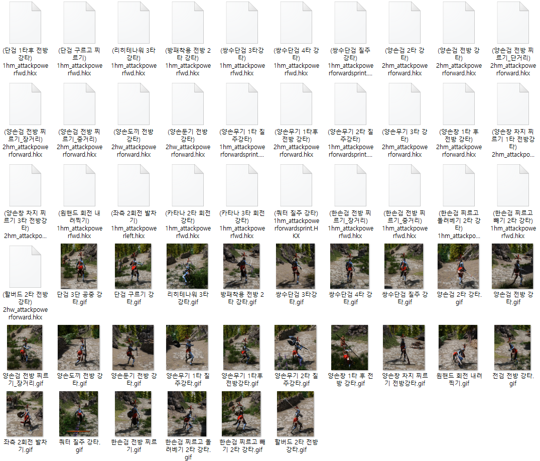 내가 설명한 무기 기대로 사용하지 않아도 됨 대신 원핸드류 무기를 적어놨는데 투핸드류 무기에 적용한다 던가 그 반대로 한다던가하면 히트프레임이 안맞으니까 무기류만 신경써서 사용하셈.