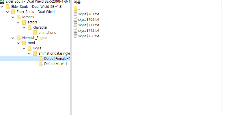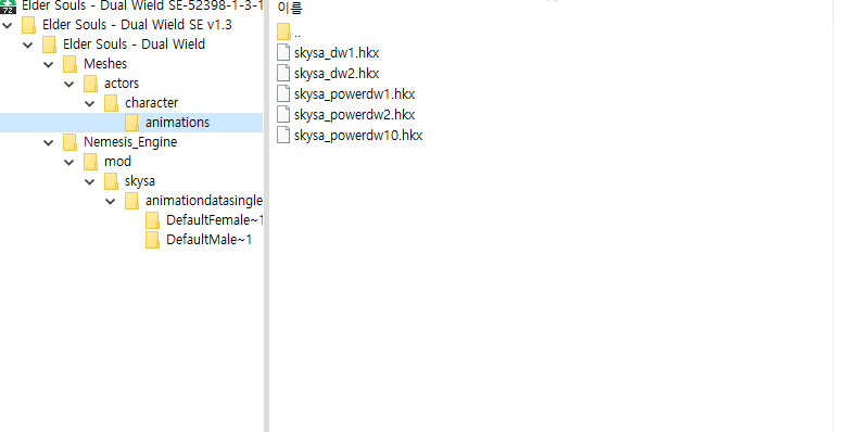 애니메이션 파일 5개가 있고 네메시스 패치 파일이 동일하세 5개가있어.